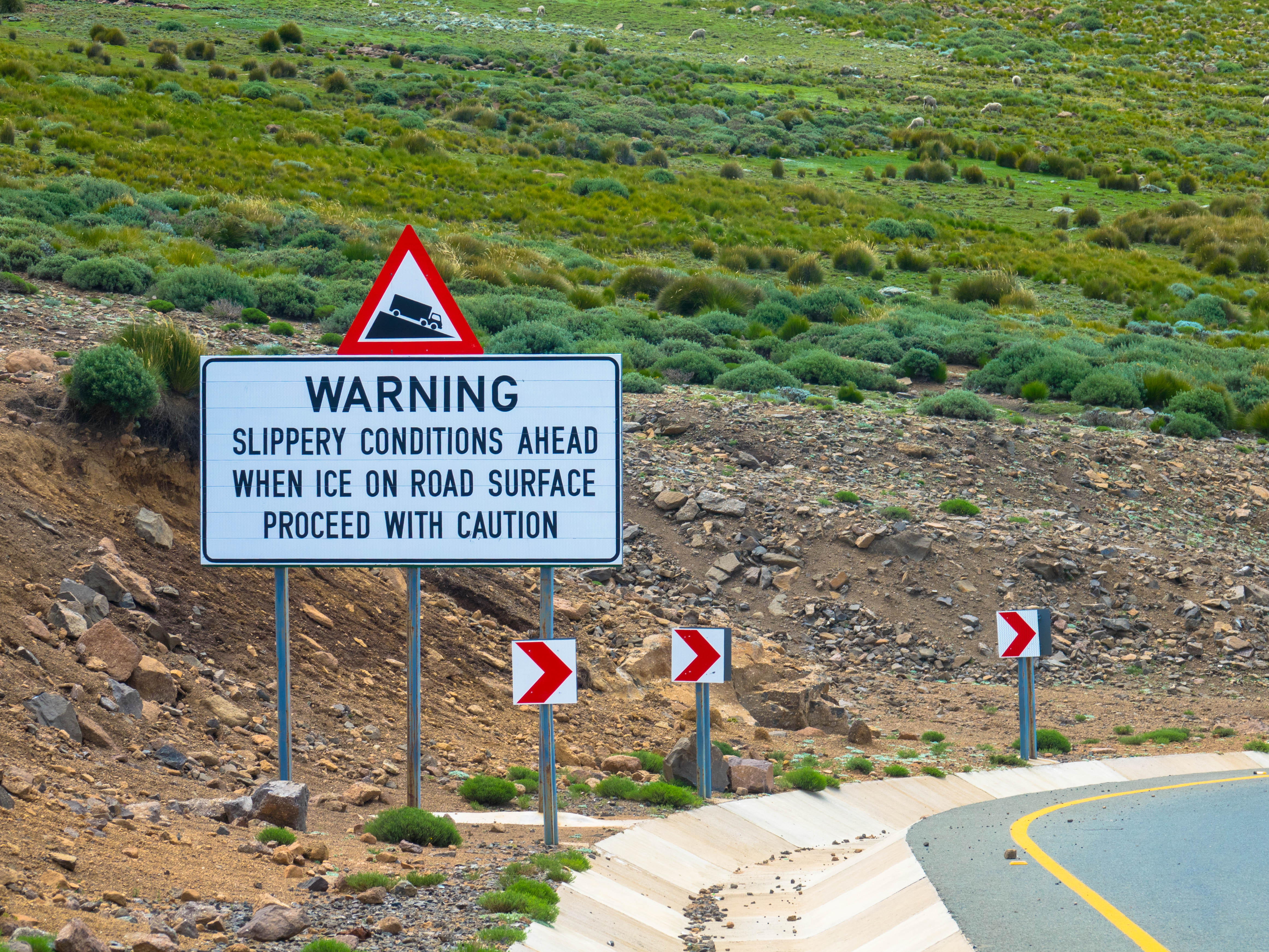 Informative signage alerts road users to potential hazards, road changes, and speed limits.